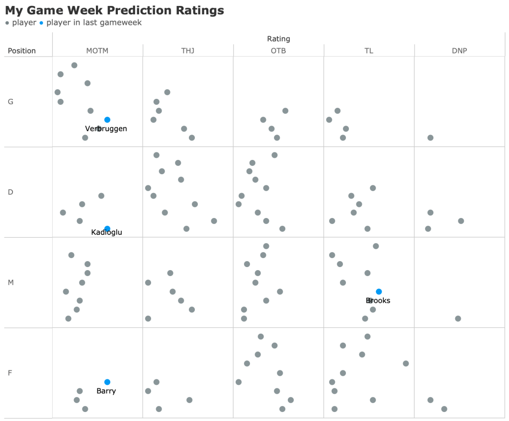 Bournemouth looked good at home (as they have all season) despite hosting Arsenal. Brooks had one half chance, but struggled to make the same impact he’s made over the last few weeks. I think I’d still keep him in the squad as they host Tottenham at home next.